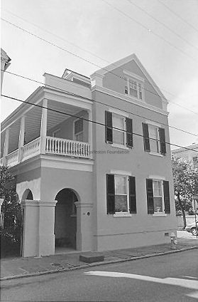 Constructed ca. 1852. Elizabeth Smith White inherited a portion of this property from her father's estate in 1840, and through partition and subsequent purchase, she and her husband created two building lots at Rutledge Avenue and Wentworth Street. By 1852 White built 89 Rutledge Avenue on the corner as a 2½ story stuccoed brick Charleston single house with stone lintels and sills on the principal windows of the front elevation, and topped by a pilaster gable with a tripartite window. The present loggia entry and piazza are later additions. An early-20th century addition to the rear dependency created a substantial additional unit accessed from Montagu Street. Shortly after constructing this residence for himself, White built a similar masonry Charleston single house with a corbeled brick gable end at 87 Rutledge Avenue. (Poston, Buildings of Charleston.)