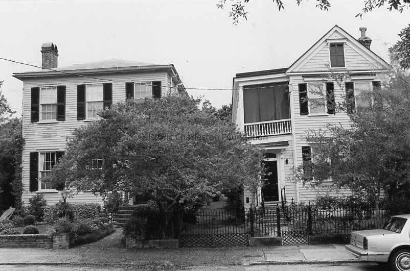 11 Logan Street was constructed 1882. Mrs. Wilson conservatively chose the Charleston single house style for her new residence in 1882. Distinguishable from antebellum examples by its one-over-one sashes, Italianate style piazza door architrave, and flat hooded window heads, the Wilson House, like its other postbellum neighbors, employs a setback to create a front yard. A Victorian cast-iron fence separates this space from the sidewalk. (Poston, Buildings of Charleston.)Collection