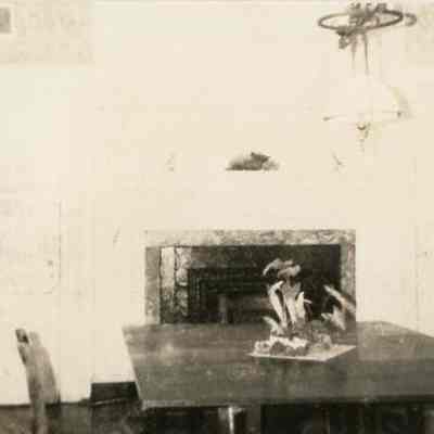 f: Interior room (possibly dining room) - tabel in front of fireplace