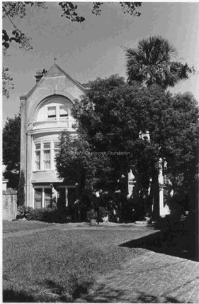 Constructed ca. 1838; renovated ca. 1881-90. Originally completed as a fairly typical masonry single house, the dwelling at 90 Ashley Avenue was altered with significant Victorian changes in the 19th century. Dr. Joseph Glover built this house on a lot purchased by his trustee in 1825 from the Harleston family, apparently using the building as a rental. At the time of his death in 1838, Edward Simons resided in this house, however, it was left to Glover's son. After ownership by the Chisolm family in the 1840s, the property passed to the Keith family, who lived at 96 Ashley Avenue and rented this building to Amelia Parker, a free person of color. In the 1880s, the house became the property of the Toale family, owners of a building-and-supply company on Hayne Street and a sash-and-blind factory on Ashley Avenue and Beaufain Street. Although the original house and the dependency were joined before the war with a hyphen addition (a practice normally followed after 1865), Queen Anne style changes were made to the front facade, including the semicircular bay window and the patterned triangular panel in the top of the gable in the surmounting finial.