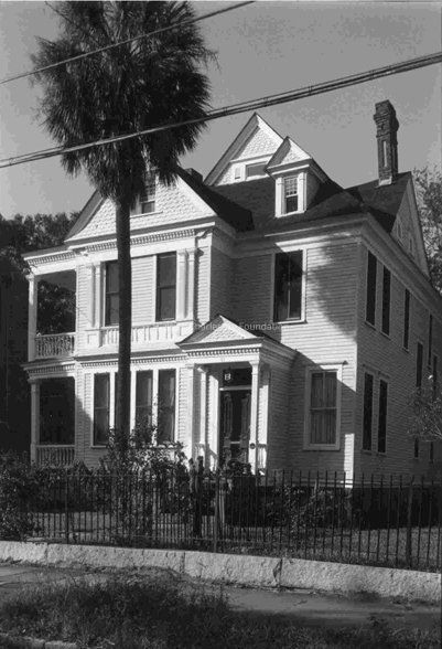Constructed ca. 1898. Mrs. Frances Carrere Robertson bought the site in 1898 and the City Ward Books show a doubling of the value of the property shortly thereafter, indicating that a house was built. She and her husband James, the president of an insurance company, lived there until he died in 1934, and she sold the property only to return as a tenant in her final years. A finely crafted example of the Queen Anne style of Victorian architecture, this 2½ story dwelling features a cross gable with a flat 1-story bay surmounting an engaged portico attaches to the principal roof of this side-hall-plan house. A double-tiered piazza with square columns adjoins the south end of the dwelling and is accessed by shuttered French doors from the principal rooms.
