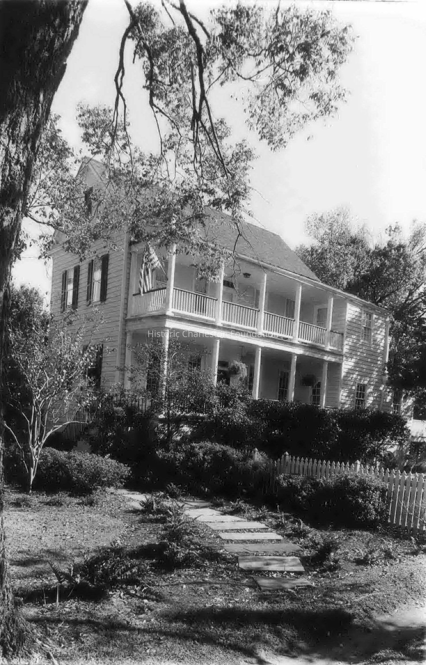 B&W photograph of 91 Beaufain Street (Steele-Mood House), view from front yard.Collection