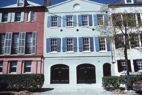Constructed ca. 1778, ca. 1782; restored 1938. This has been called the "Inglis Arch House" for many years because it is on the site of a pre-Revolutionary building leased by George Inglis and possessing an archway leading to an alley; the original dwelling burned in the fire of 1778. After the Revolution the mercantile firm of Leger and Greenwood rebuilt on the site. Leger and Greenwood are famous as importers of tea in the years immediately before the Revolution; it was their tea seized by Charleston citizens in the Charleston Tea Party in 1775. Briefly owned by Nathaniel Russell, the structure was sold to Frederick Kohne, who prospered at this site and willed the building to the Charleston Orphan House. Remodeled in the Greek Revival style, probably by Charles West, who operated a ship chandlery on the ground story, the building received extensive damage during the siege of the city in 1864. After several commercial uses the house was restored in 1938. The Greek Revival facade with its storefront and parapeted roofline was replaced with the current ground story and the upper pediment with a bulls-eye opening. (Poston, Buildings of Charleston.)