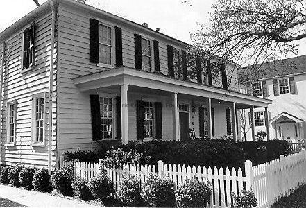 B&W photograph of 91 Smith Street (Nathaniel Maxwell House), street (front) elevation, corner view. White picket fence in foreground.Collection