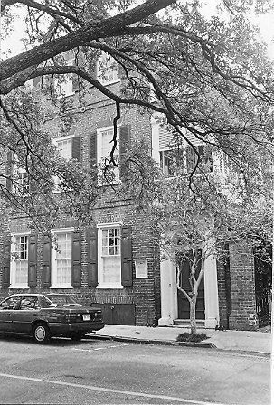 Constructed ca. 1805; renovated 1908, late-1980s. The houses at 90-94 Church Street were called by the late architectural historian Samuel G. Stoney "three variations on the theme of the Charleston 'single house.'" Each reflect the development of the single house from the mid-18th century. The clients who contracted for the three 3-story brick houses -- Leger, Christie, and Cooper -- were all wealthy and socially prominent individuals whose architectural aspirations, according to one architectural historian, defined Charleston's early townhouses as "a union of cosmopolitan and vernacular building traditions." While 90 and 94 Church Street were used commercially, the taller of the three at 92 Church Street was used solely as a residence for a Scottish merchant in the early 19th-century, built in the Adamesque style. Each of the three edifices, retains splendid original woodwork. The house remained in possession of the Christie family until the middle of the 19th century; it was then purchased by St. Philip's Church in 1906 and became the rectory of St. Philip's Church. (Poston, Buildings of Charleston.)