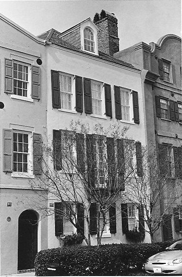 Constructed ca. 1782-87; altered 1836; restored and renovated 1941, early 1990s. This house was built to replace the house and shop with a Flemish gable that belonged to the Tory Fenwicke Bull, destroyed in the 1778 fire. James Cook purchased the property in 1778 and completed the present house within a decade. The ground story was rented for various mercantile uses while Cook's widow, who had subsequently remarried, lived upstairs until her death in 1826. Passing to Moses Hyams, a commission merchant, in 1836, the house was subsequently remodeled with a Greek Revival facade. Susan Pringle Frost purchased the building in 1920 and sold it to the McGowans, who restored it in 1941 along with several other houses in this block. The 3-story stucco dwelling rises to an original hipped roof with a single projecting dormer. Most of the interior of the building has been lost, and a balcony was added to the central bay of the second story in a recent renovation. Loutrel Briggs designed the present garden in the 1940s. (Poston, Buildings of Charleston.)