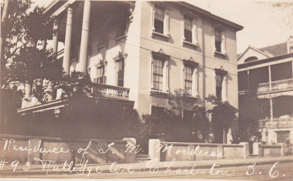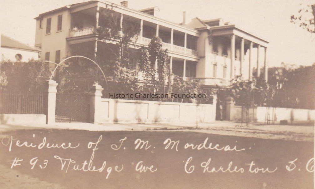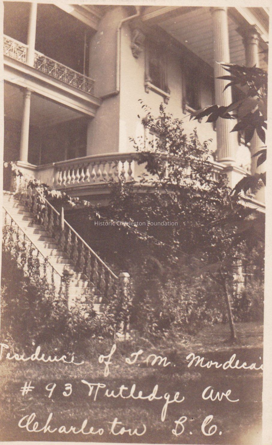 Handwritten on both photographs: "Residence of T.M. Mordecai, #93 Rutledge Ave., Charleston, S.C." Photo B as a one cent stamp affixed.