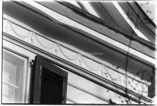 B&W photograph of 96 Bull Street (Isaac Bennett House), detail of frieze.Collection