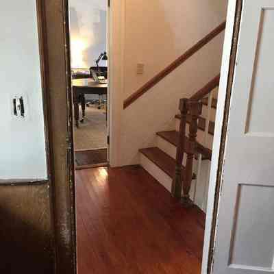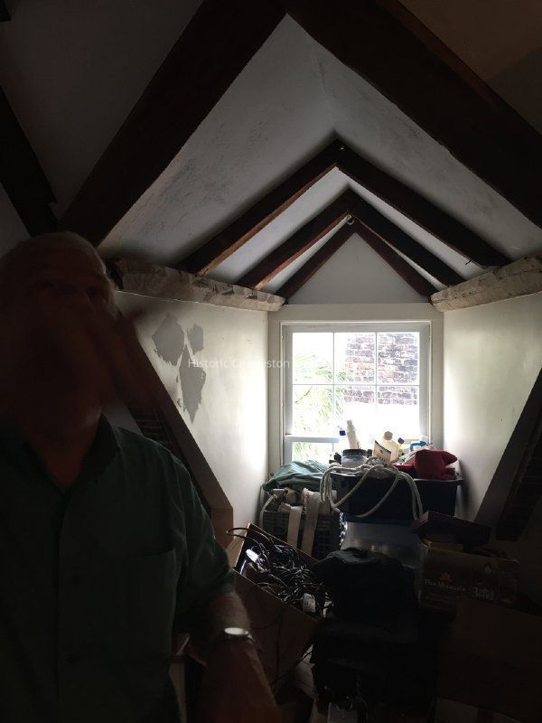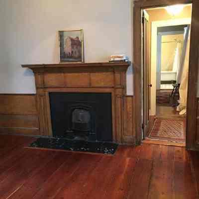 Forty-four (44) color digital photographs of interior features of 96 Smith Street (Richard Holloway House). Includes mantels, stair rails, joists and framing, faux-grained wood, plank walls, cistern, etc.