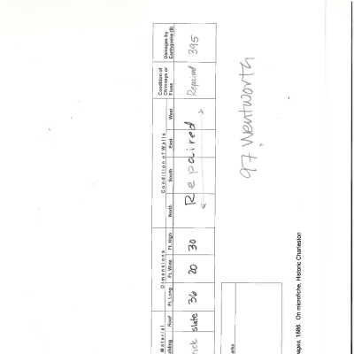 Constructed between 1830-40. This two-and-a-half story brick house with sandstone window sills was built on land leased from St. Michael's Church, which retained ownership of the lot until 1945. The house varies from the single house plan by having an entrance on the street side and a side hall with adjoining first floor rooms. A twin formerly stood at 95 Wentworth Street. Today the house is used as fraternity housing by the College of Charleston. (Source: City of Charleston Tour Guide Training Manual.)