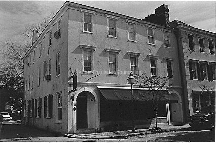 Constructed ca. 1785-90. When Charleston branch of the Bank of the United States was chartered in 1790, this simple 3-story stuccoed building served as its first headquarters before its move to 80 Broad Street. In keeping with Charleston's commercial traditions, an arched opening provides access to the first floor, while residential spaces are accessed through the door on the opposite end of the front facade. The building was owned through most of the antebellum period by Mary A.S. Marion, a member of a prominent Berkeley County plantation family, that included General Francis Marion, the famed "swamp fox." (Poston, Buildings of Charleston.)