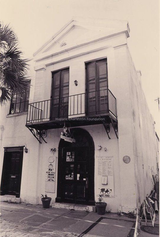 B&W photograph of 98 Broad Street (Dr. Henry R. Frost's Surgery), street (front) elevation showing the southeast corner of the building. Now the restaurant known as Fast and French, Gaulart & Maliclet, and G&M.