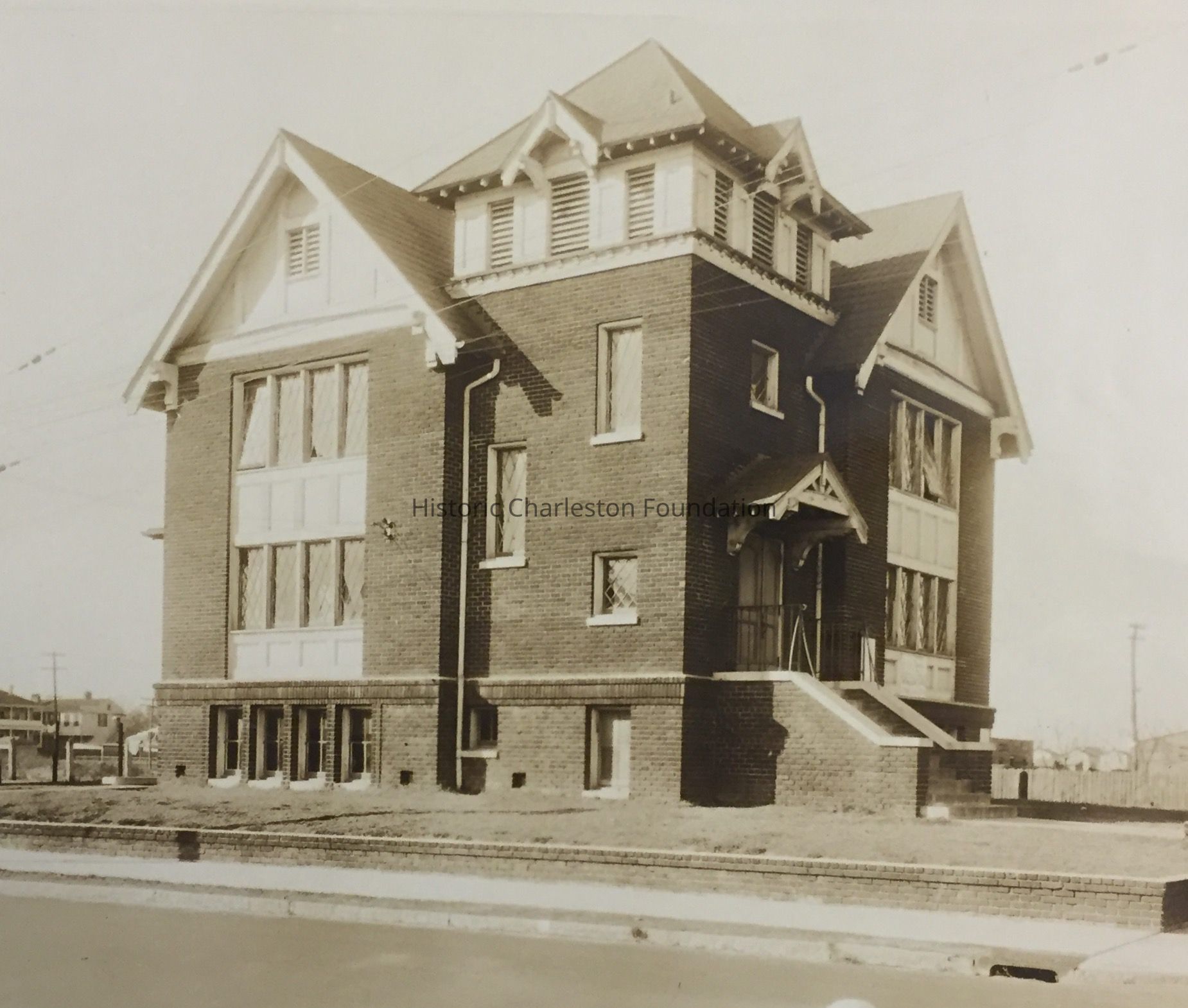 B&W photograph (scan) of 981 King Street, located at the northwest corner of King and Francis Street, taken at the time the building was a Baptist Church known originally as the Sunbeam Memorial Baptist Church, King Street Baptist Church, and Hampton Park Baptist Church.