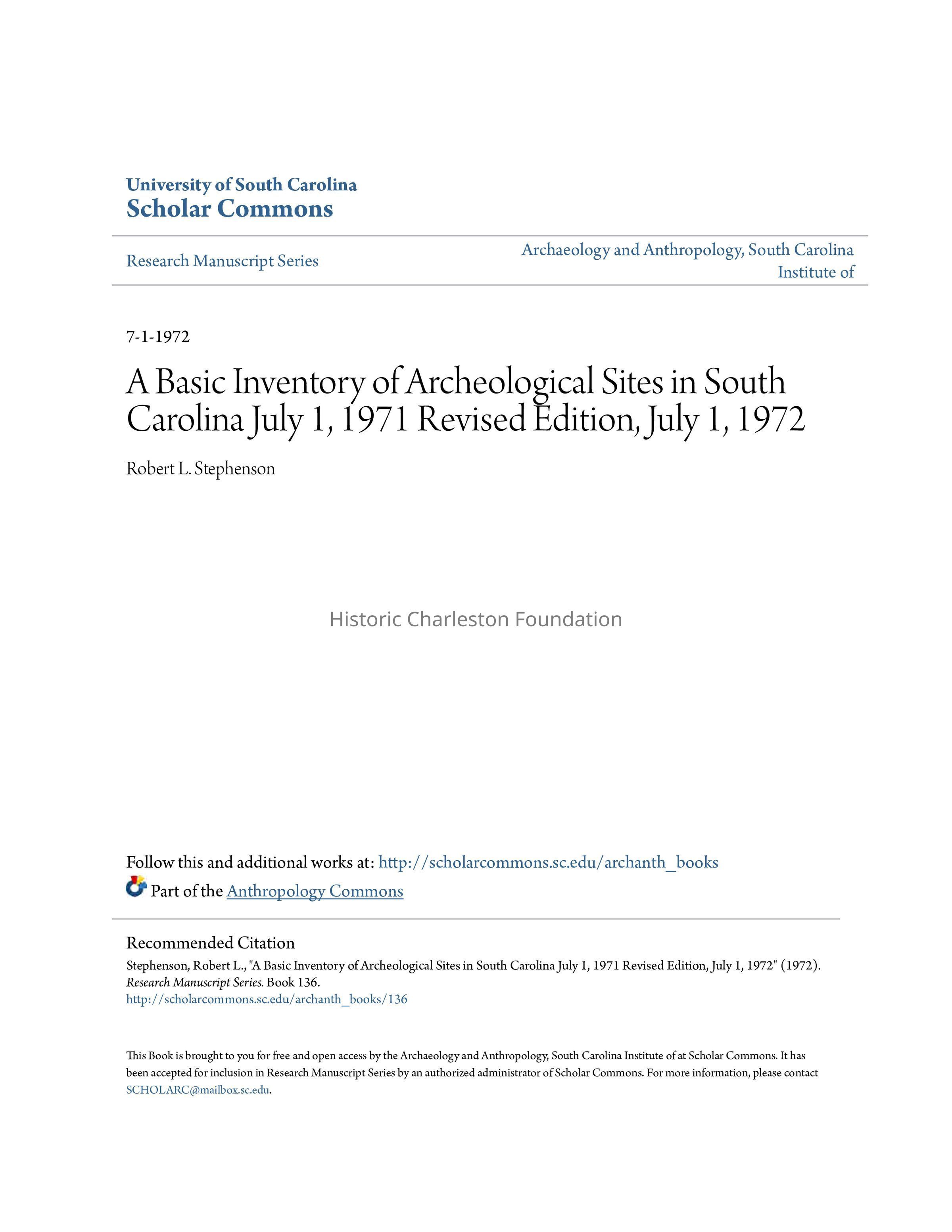 A Basic Inventory of Archeological Sites in South Carolina July 1, 1971 Revised Edition, July 1, 1972Entry/Object ID