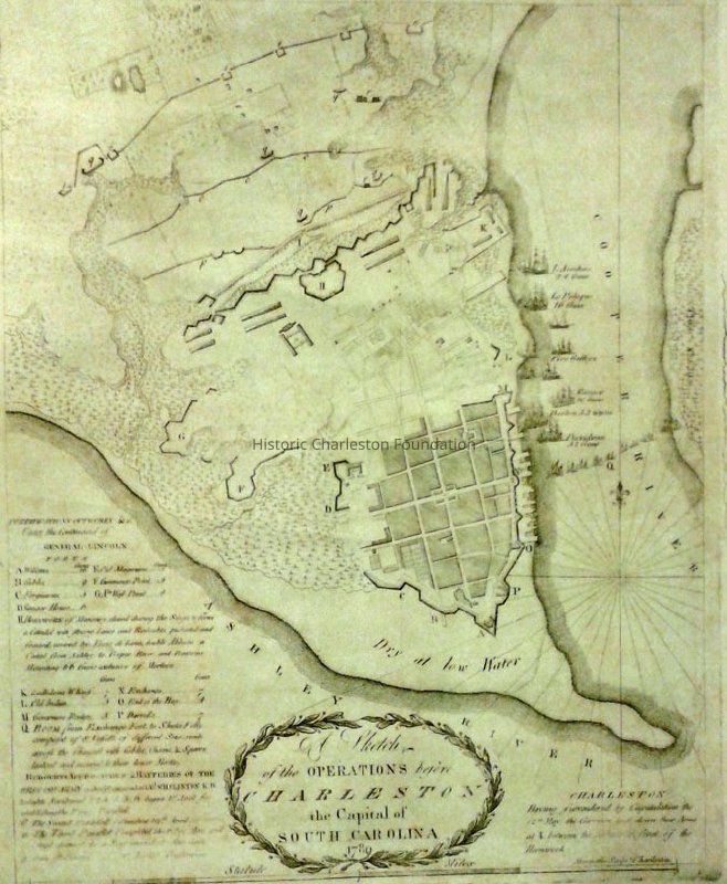 "Charleston having surrendered by capitulation the 12th of May, the garrison laid down their arms at I, between the abbatis in front of the hornwork."