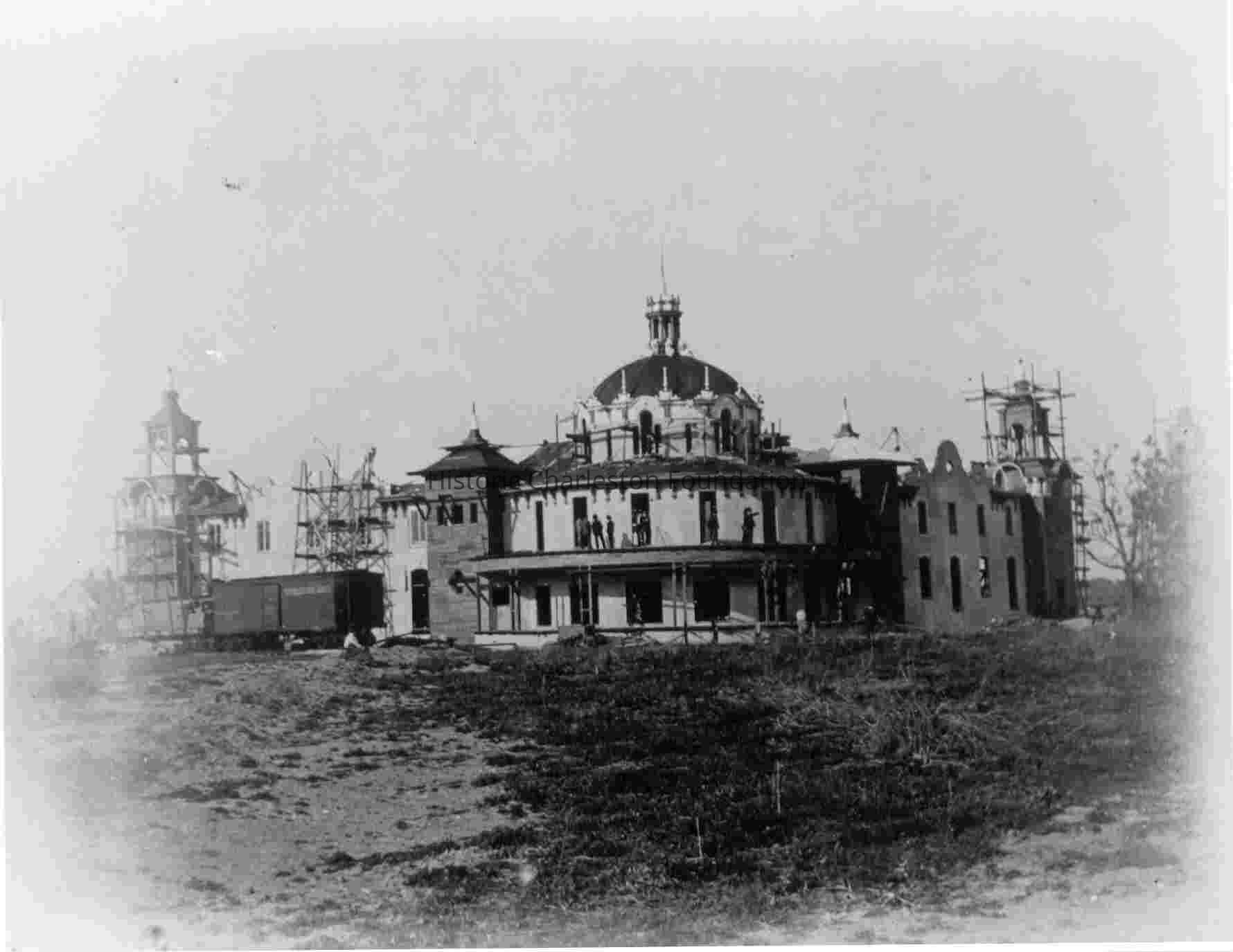Photo is identified as the SC and West Indian Exposition Administration Building, under construction. Bradford Lee Gilbert, architect.Context