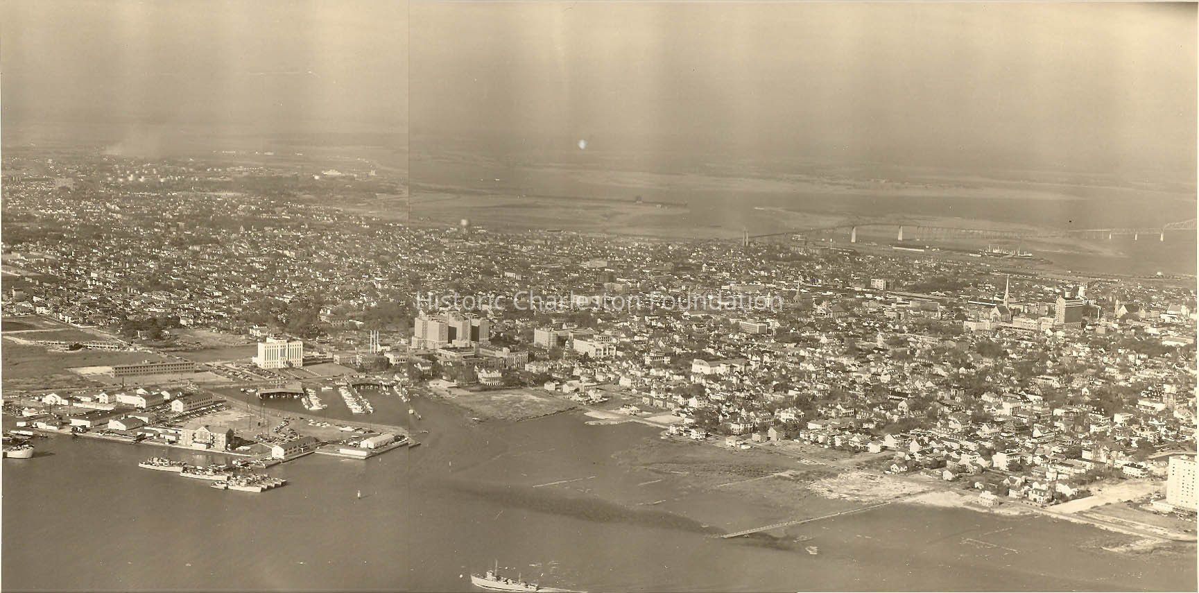Aerial view of Charleston, looking east across the peninsula.Collection