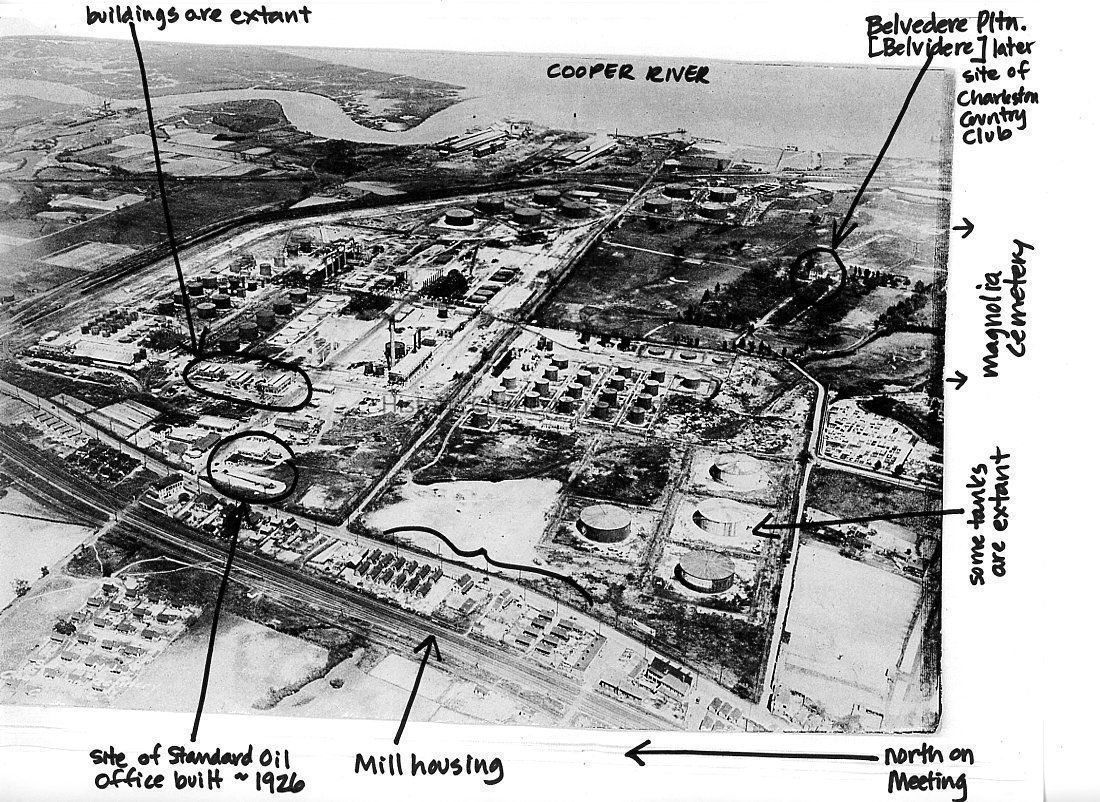 The photo, which appeared in the Evening Post newspaper on April 29, 1926, is captioned: "The air view shows the big refinery established by the Standard Oil Co. on the Cooper river several years ago, there being seen the stills, storage tanks, various buildings, athletic grounds, and the former country club and other property recently added to the territory covered by the extensive plant."Collection