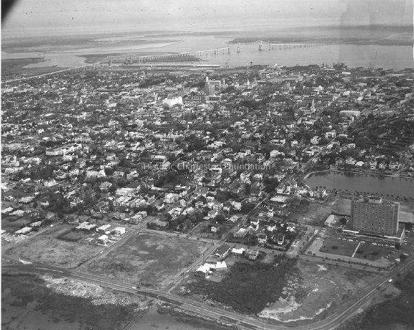 18: Looking north toward Grace Memorial Bridge and the Cooper River. Meeting Street at left. Attributed to R.A. Nettles.
