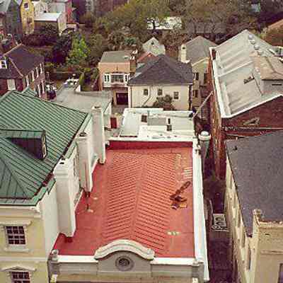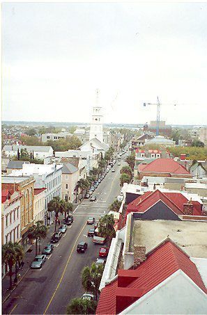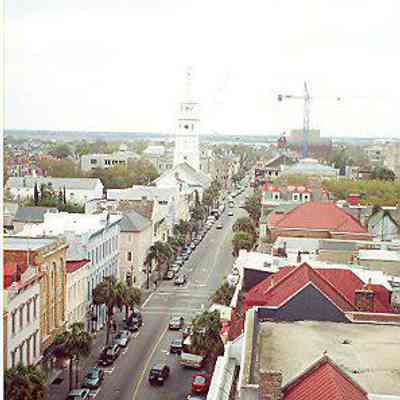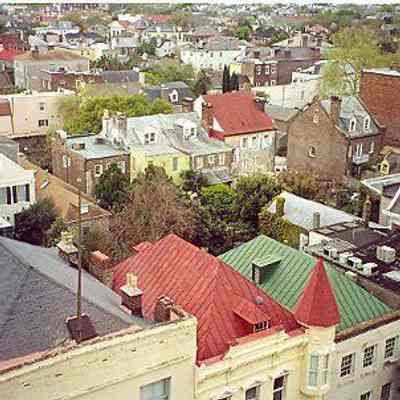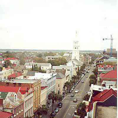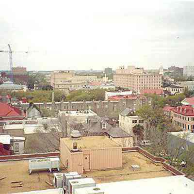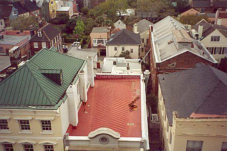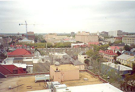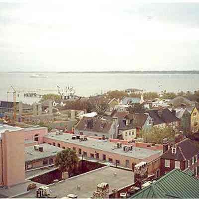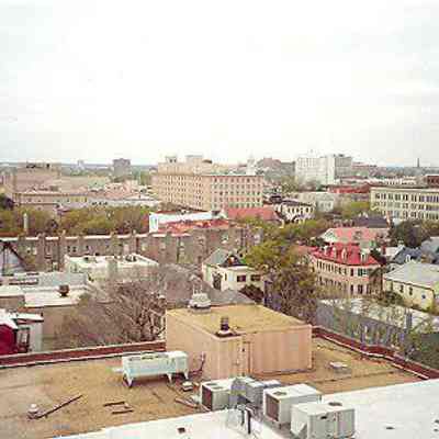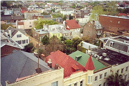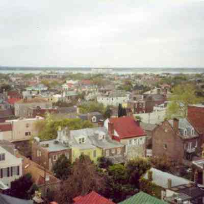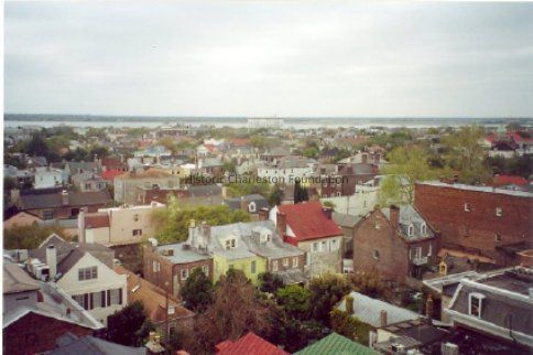 4: Two color aerial views taken from the cupola of 16 Meeting Street (Calhoun Mansion), north and northeast. Photos taken by HCF staff, Carrie Albee, 2000. 4x6.Collection