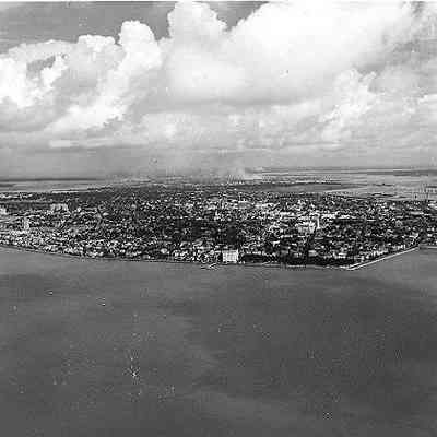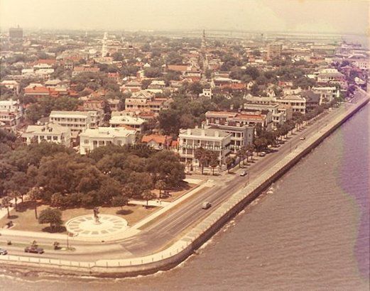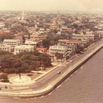 5: Aerial view of peninsula the bend of East Battery at White Point Garden. Color (Kodachrome) photo, 8x10. Undated, unattributed.Collection