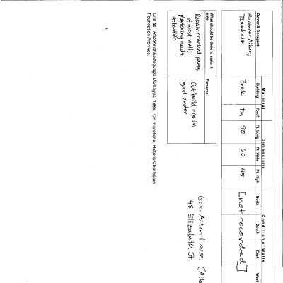 Elizabeth Street, National Register of Historic Places, Aiken-Rhett House (Charleston, S.C.), Aiken-Rhett Family, Historic buildings--South Carolina--Charleston, Historic house museums--South Carolina--Charleston, Flat Rock (Henderson County, N.C.), Jehossee Island (S.C.)Archive Details