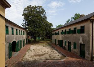 Slave quarters, Aiken-Rhett House (Charleston, S.C.), Nathaniel Russell House (Charleston, S.C.), Slaves--Dwellings--South Carolina--Charleston, Outbuildings--South Carolina--Charleston, Carriage houses--South Carolina--Charleston, Trompe l'oeil, Interior architecture, Doors, Medallions (Architecture), Plasterwork, DecorativeLegacy Lexicon