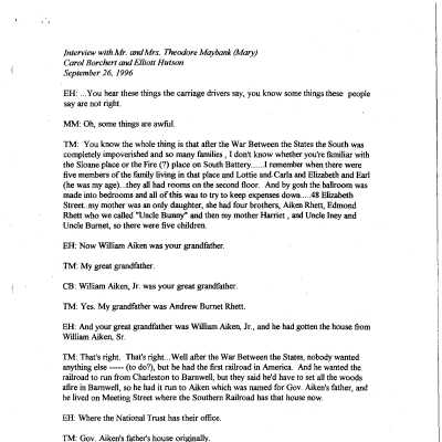 Articles and other publications including: Voyage of the Paper Canoe: A Geographical Journey of 2500 Miles From Quebec to the Gulf of Mexico, During the Years 1874-5 by Nathaniel H. Bishop; "William Aiken" (from Twelve Great SC Farmers); "Jehossee Island" (account and William Aiken history); transcript of interview of Mr. and Mrs. Theodore Maybank (Mary) by Carol Borchert and Elliott Hutson (Sept. 26, 1996); "The Plantation Tradition in an Urban Setting: The Case of the Aiken-Rhett House in Charleston, South Carolina (John Michael Vlach, 1997, draft); "Service Spaces and Outbuildings" (excerpt from paint analysis of Susan Buck); "Paint Discoveries in the Aiken-Rhett House Kitchen and Slave Quarters" (Susan Buck, 2005, in Perspectives in Vernacular Architecture, v. 10); "Plantations" (excerpt from Plantations: Encyclopedia of Race and Racism, 2008); "Interpreting Race, Slavery, and African American Experience at Historic Sites (Evan Kutzler, 2012, graduate student report).