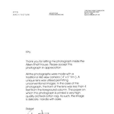B&W photograph of the entryway of the Aiken-Rhett House (interior); columns in foreground.Collection