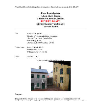 Aiken-Rhett House Outbuildings Paint Investigation: Revised DraftEntry/Object ID