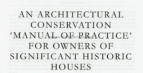 An Architectural Conservation "Manual of Practice" for Owners of Significant Historic Houses: A Proposal to [names omitted]Entry/Object ID