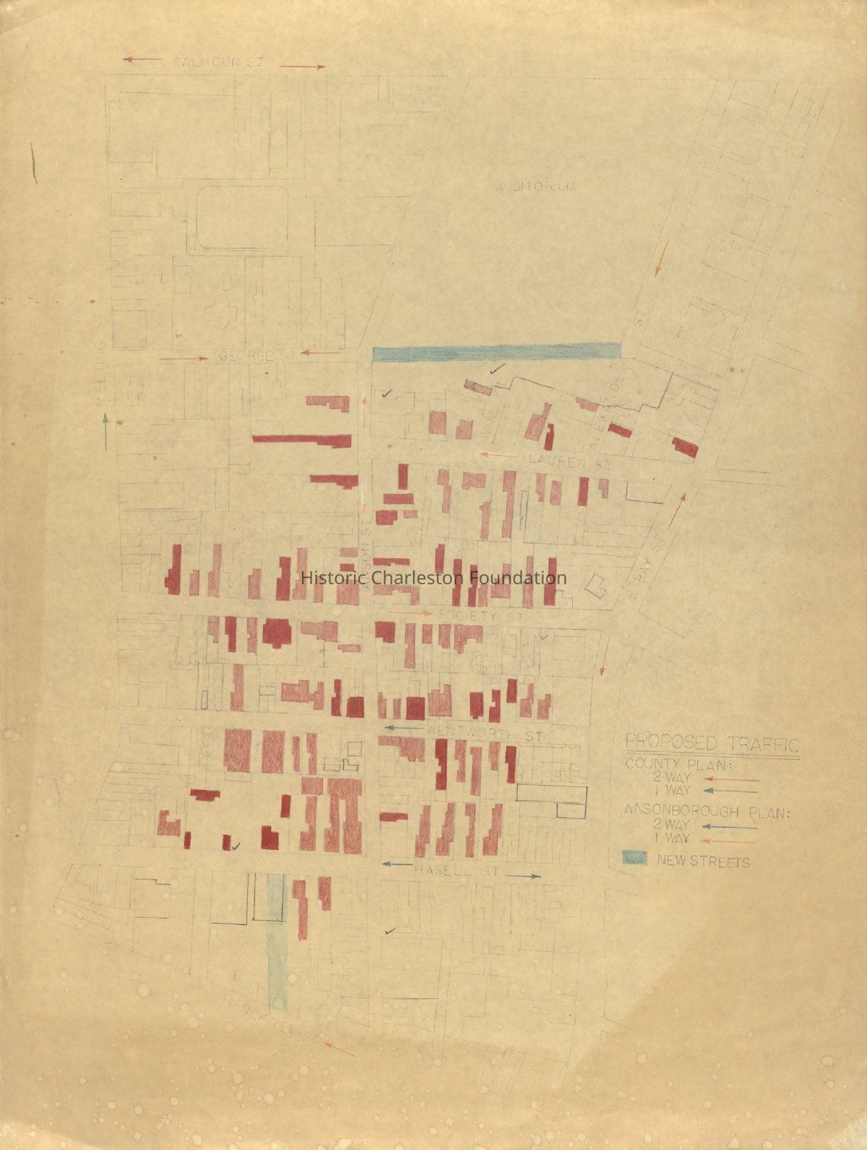 Sheet 6: Proposed Traffic. Indicates the County's plan, the Ansonborough plan, and new streets.Collection