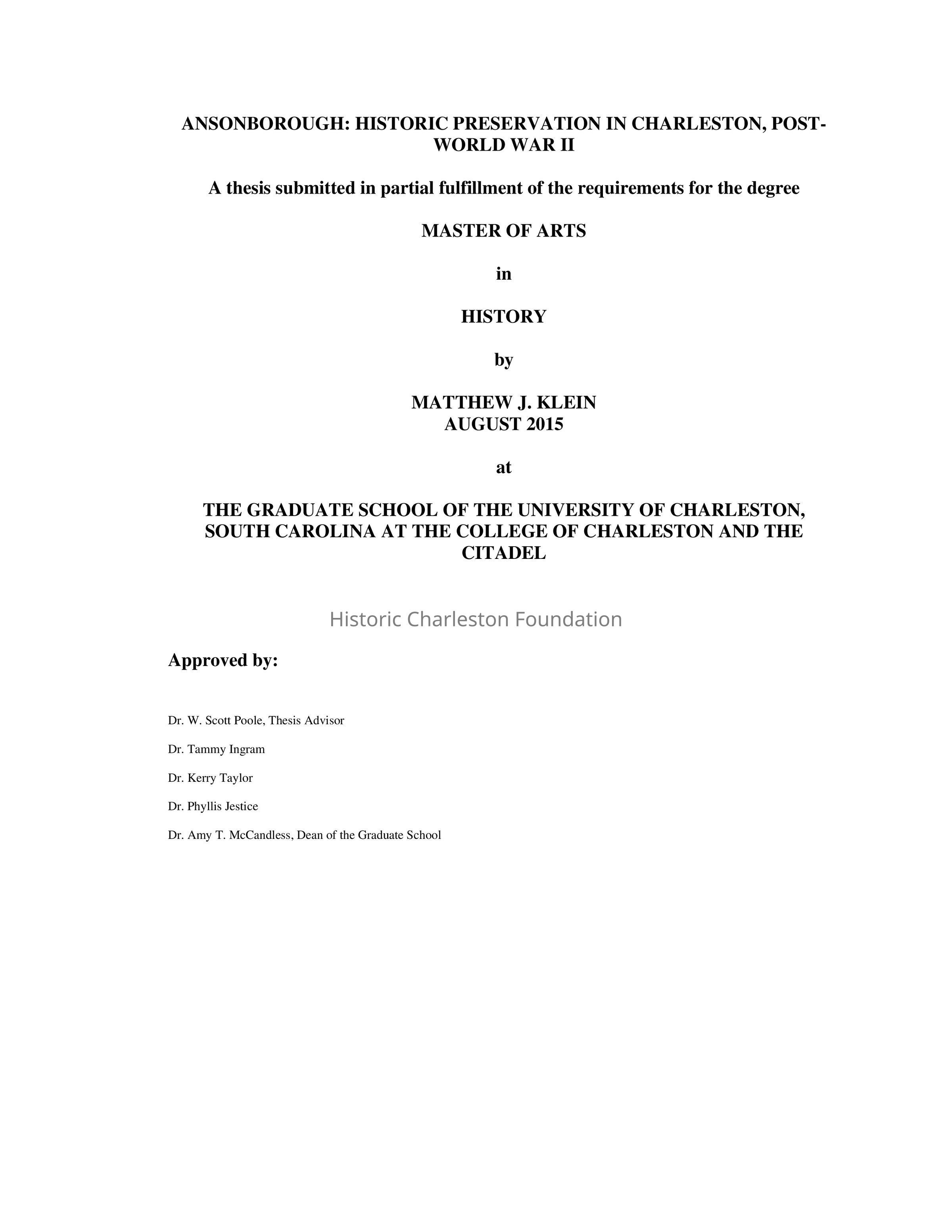 Master's thesis (M.A.), Graduate School of the University of Charleston at the College of Charleston and The Citadel.