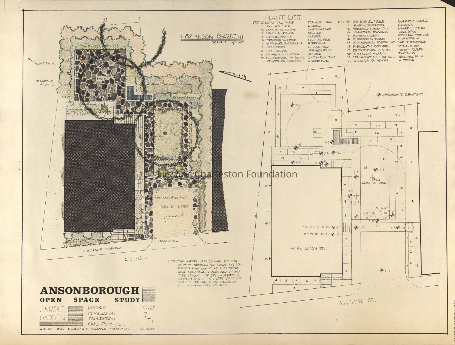 Sheet 7: Sample Garden, showing a proposed landscape plan and plant list for 82 Anson Street.Collection