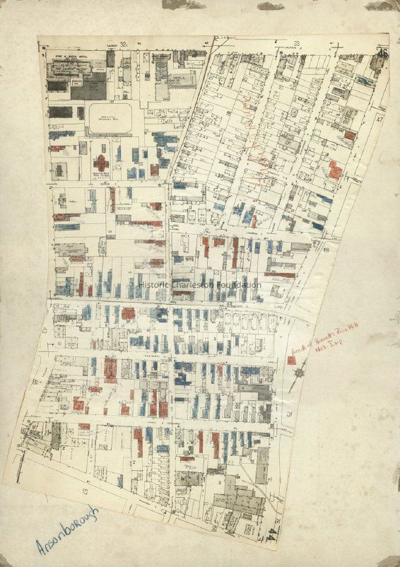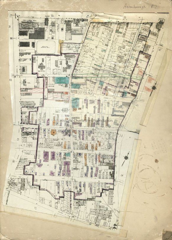 Three maps consisting of a Sanborn Map (copy) colored-coded for use by Historic Charleston Foundation to study a residential area in Ansonborough. Color-coded to depict building status and condition.