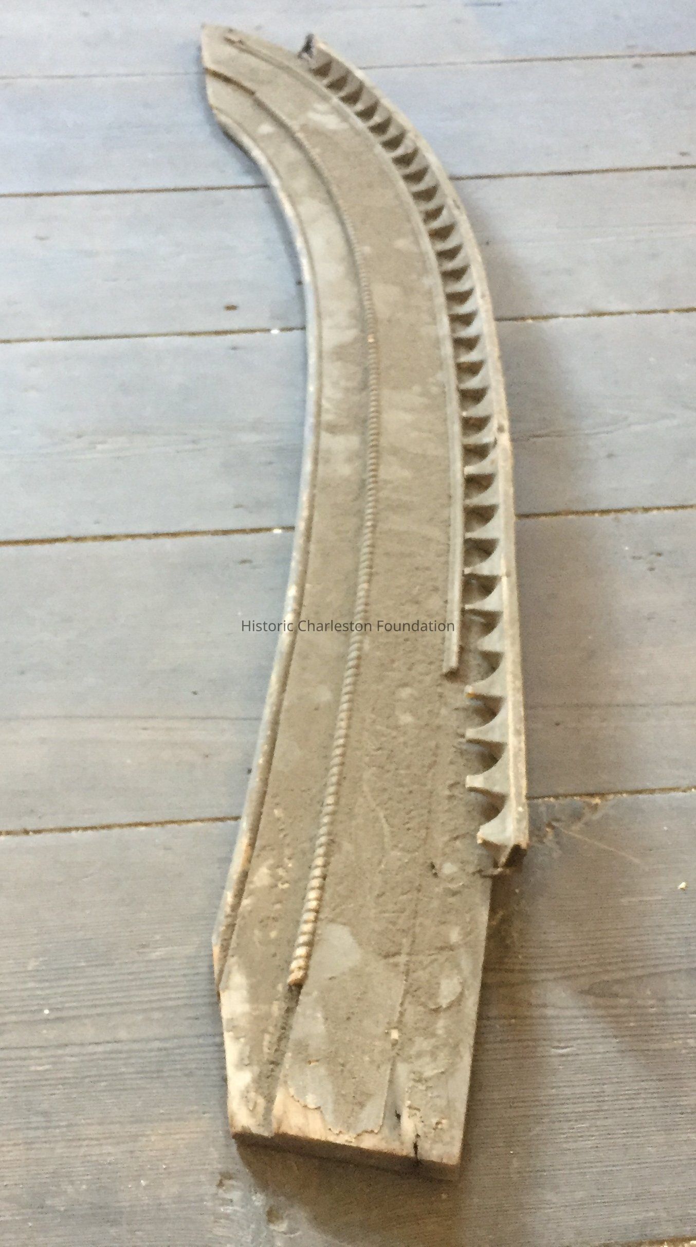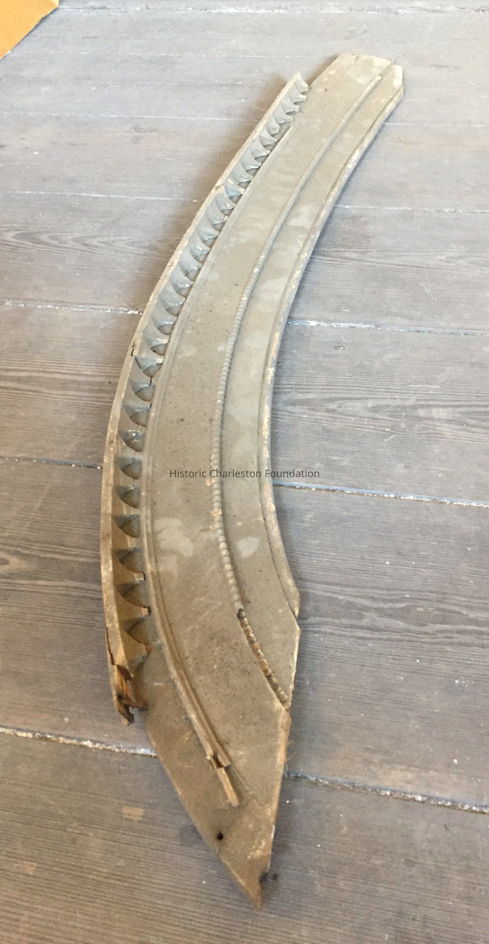 Section of arched doorway trim. Broken pieces but otherwise good condition.Collection