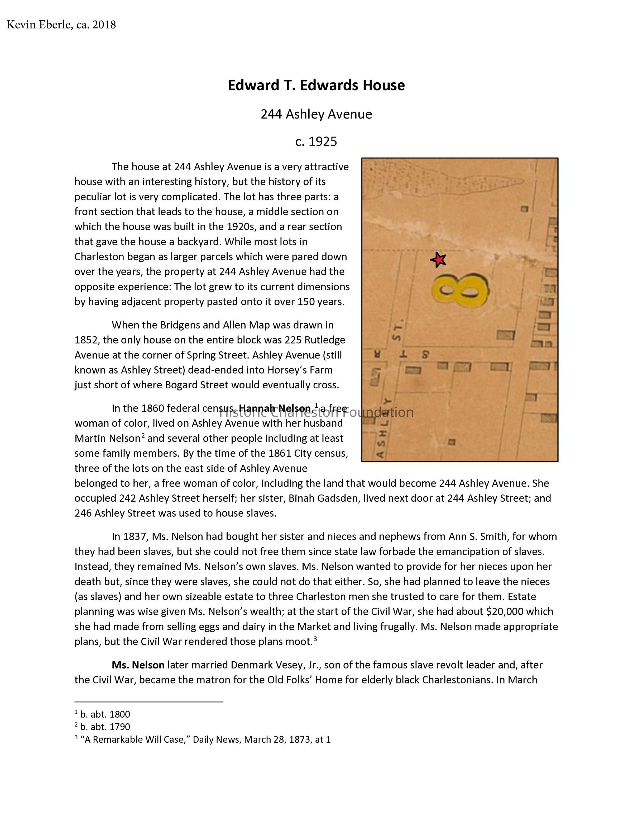 File contains historical research reports for 244 Ashley and 250 Ashley (Eberle, 2018)'; newspaper article dated 5/5/1957, on the "new look" of sections of Ashley Avenue.Collection
