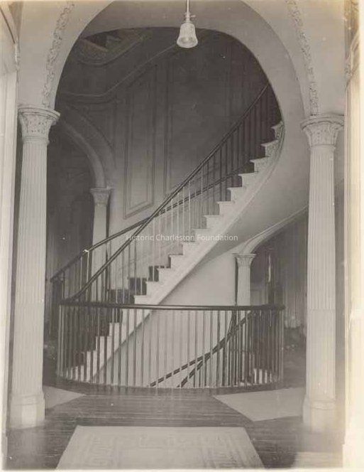 Four photographs (scans) of Ashley Hall (172 Rutledge Avenue). Exterior (building and gate) and interior, including staircase.Photograph Details