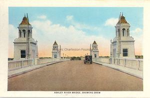 Postcards, Ashley River, Cars, Ashley River Bridge (Charleston, S.C.), TollhousesPostcard Details