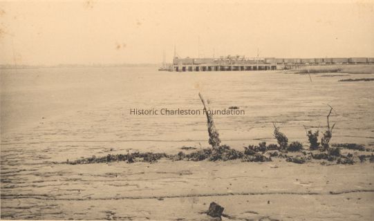 Photograph of a view across the Ashley River to South Carolina Railway wharves.Context