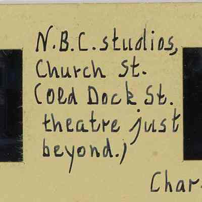 Captioned: "N.B.C. studios, Church St. (Old Dock St. Theatre just beyond)."