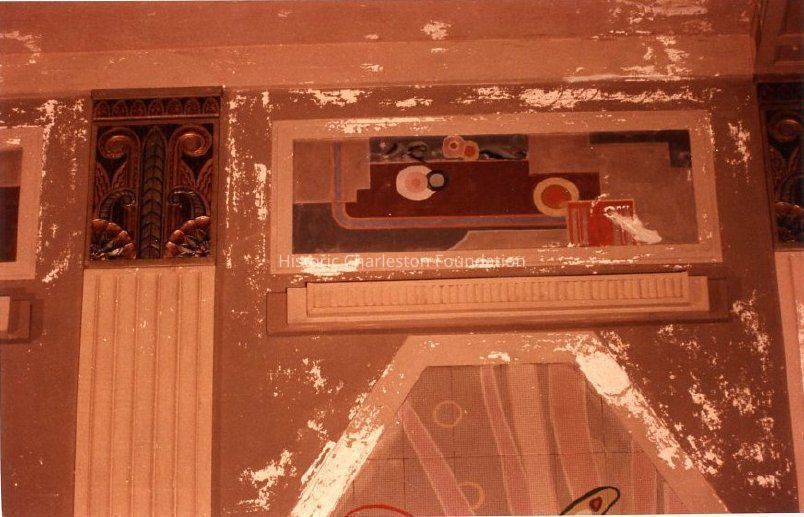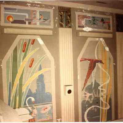 d-e: Auditorium, detail of muralsContext