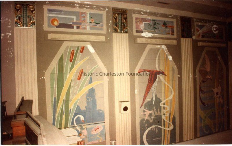 c: Auditorium, facing north. View of wall murals.