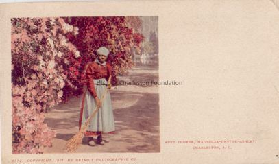Postcards, African Americans, Magnolia Gardens (Charleston, S.C.), Sweeping and dusting, African American womenPostcard Details