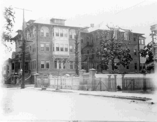 B&W photograph of the northeast elevation of 55 Ashley Avenue and the corner of Ashley Avenue and Beaufain Street. (Baker House a/k/a Baker-Craig Sanitorium a/k/a Baker Hospital a/k/a Baker Sanitorium.)Collection