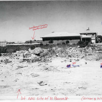 Features the view north on Barre Street from an empty lot, showing 35 Barre and 37 Barre. The Gov. Thomas Bennett House (69 Barre Street) is in the background at right. The Leon Banov County Health Center (334 Calhoun Street) is in the background at left.Collection