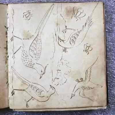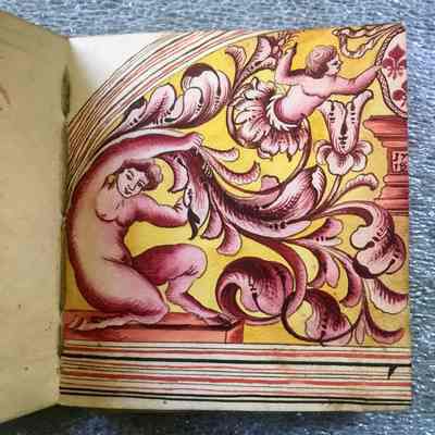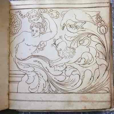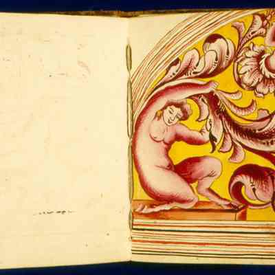 Originally a tool of the trade and testament to John Berger's intimate knowledge of baroque decorative vocabulary, this extremely rare design book descended in the Berger family, becoming a precious heirloom and genealogical record. Berger was a French Huguenot émigré who worked in Boston at the corner of Pond and Short streets. Described in period documentation as a "French painter," he was more specifically a painter-stainer-meaning he decorated buildings, carriages, furnishings and ships with a variety of ornamental painting techniques, including graining, gilding, japanning, marbleizing and varnishing.