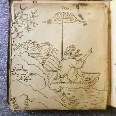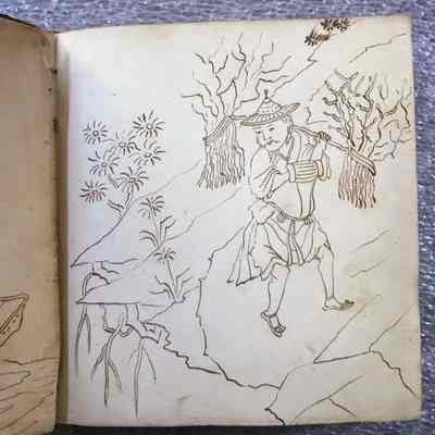 The design book identifies Berger as one of Boston's earliest jappaners. Berger's chinoiserie drawings depict Asian figures, pagodas, birds and fantastical beasts within exotic landscapes. It appears that these designs were original or copied from an unidentified source. On other pages, Berger drew French "arabesque style" renderings with satyrs and putti and decorative borders with scrolling acanthus-all retaining their brilliant hand-painting of red and ochre.