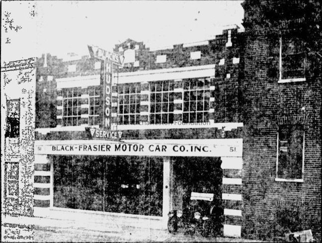 B&W newspaper photograph (scan) of the new automobile dealership, Black-Frasier Motor Car Company, at 51 Wentworth Street.Context