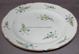 Notes: During the late 18th century, French porcelain became increasingly fashionable in America. for some, it was the close ties, cultural and political, that develped between America and France during the Revolution. For others, it was simply the new classical shapes with bright, decorative gilding that provided the attraction. The letters of Mary Stead Pinckney(d.1812), written in Paris during her husband's service as the United States ambassador, document the trend. In 1797, she described her visits with the other Charlestonians to the Parisian procelain factories:" Mrs. [Henry] Middleton, Ralph[ Stead Izard], Eliza [Izard], myself, and a genteman to conduct us went yesterday to visit the Angouleme manufactory of china...cups & saucers with beautiful miniature figures rivalling the first masters on ivory. vases from 50 to 1000 louis a pair--an absolute picture....we went to see the whole process, from the lump of clay which they were rolling about as if for a tart, til it took the form of the beautiful ware we had so much admired before... If I remain in France I shall certainly visit the manufactory of Seve,which is generally accounted superior to that of Angouleme." Mrs. Pinckney hoped to procure a set of fashionable china for her cousin, Margaret Izard Manigault. Sse informed her of recent ceramic purchases of other Americans in Paris, such as Mrs. Edward Rutledge and Mr. Codman of New York: " To the best of my judgment Mrs. E[dward] Rutledge's desert set is Angouleme, & the plates like hers at the manufactory are 6 louis each. Mr. King sent to Mr. Codman , a friend of his from Paris, & acquainted with business, & desired him to send him a table & desert set to cost 250 louis d'ors for the two sets, & to have them both alike, & nothing extraordinary-----a little bunch of purple flowers, & a gilt edge---a beautiful dessert set ( as I wrote Rebecca) only flowers of different colours. THis dessert service bears the mark of the Comte d' Artois factory. Established in 1769, this factory enjoyed the patronage of Charles Phiilippe, Comte d'Artois, the younger brother of Louis XVI and the future King Charles X of France. ( Charlestonians Abroad, Catalogue p.288) Status: OK Location Details1: 1
